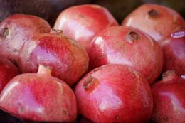 Pomegranates are a distinctive fruit whose smooth and slightly tough exterior belies the dense, complex profusion of tightly packed seeds underneath. The fruit appears in the produce stands around this time of year but the pomegranate flavor has permeated the world of brands that put fruit on a pedestal and are always looking or the next great thing – beverages, yogurts and hair and skin products. The popular Pinkberry’s signature flavor of frozen yogurt is the tangy tart pomegranate.