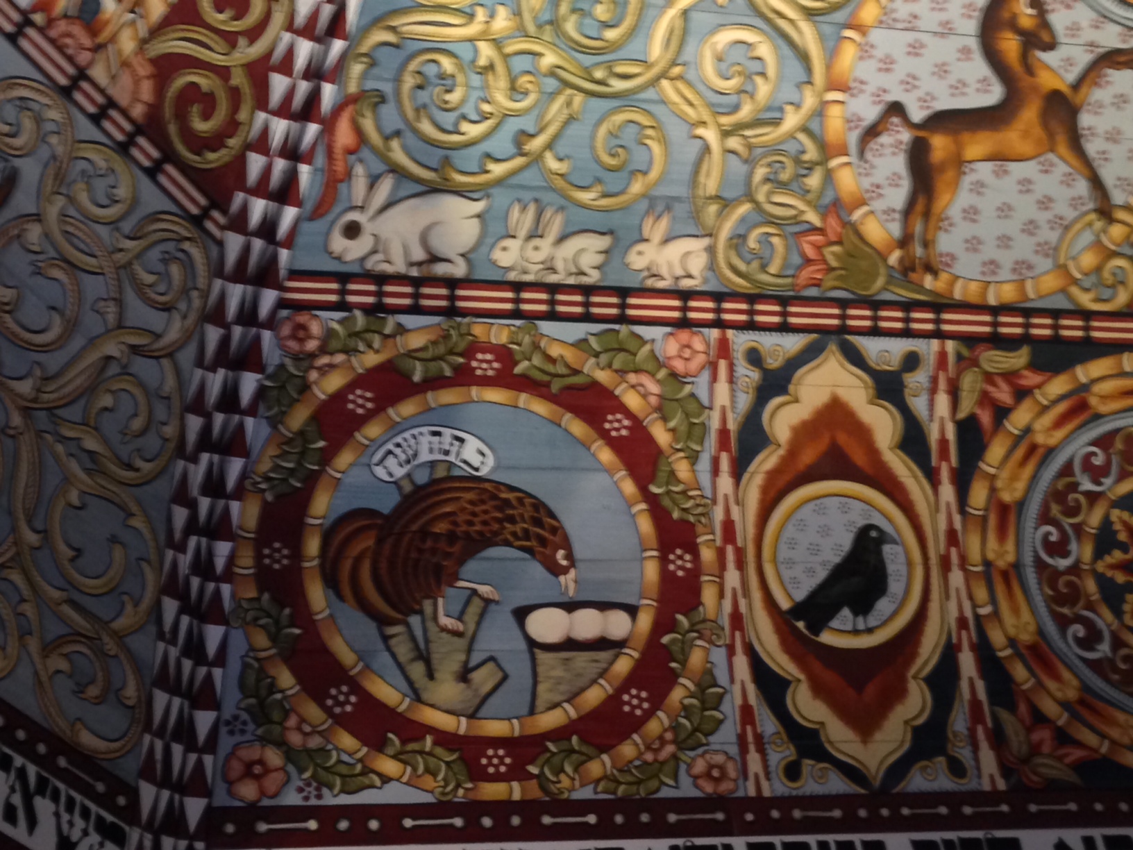 The view of the magnificent ceiling/interior reproduction of a small town Polish 17th century synagogue as part of the core exhibition of the Polin Museum.